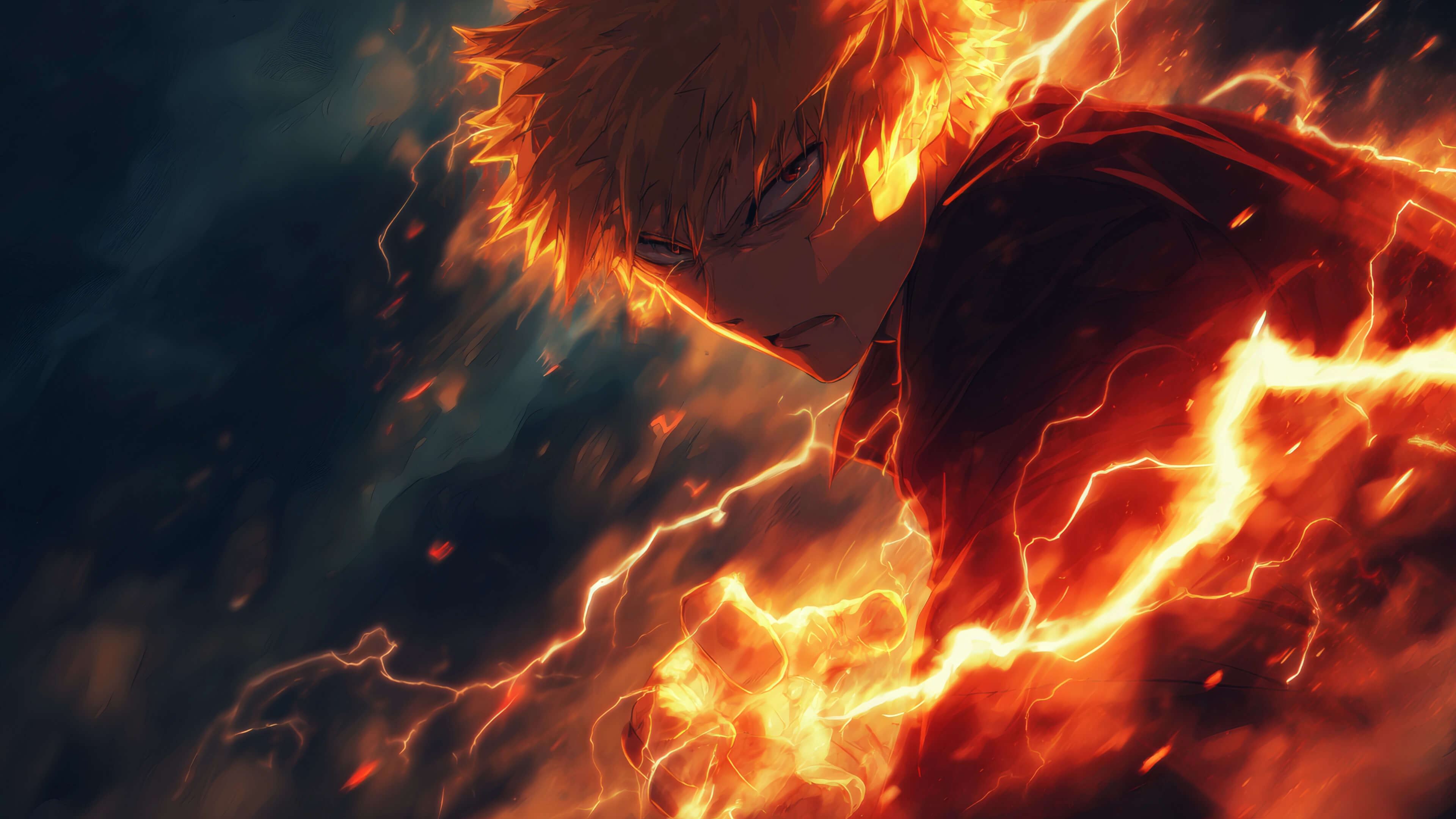 anime fire power, explosive energy, fire ability, blazing anime character, anime battle, glowing fists, fire aura, anime rage, fire elemental, superpowered anime hero, epic anime wallpaper, dramatic lighting, anime explosion, supernatural anime powers, hero transformation